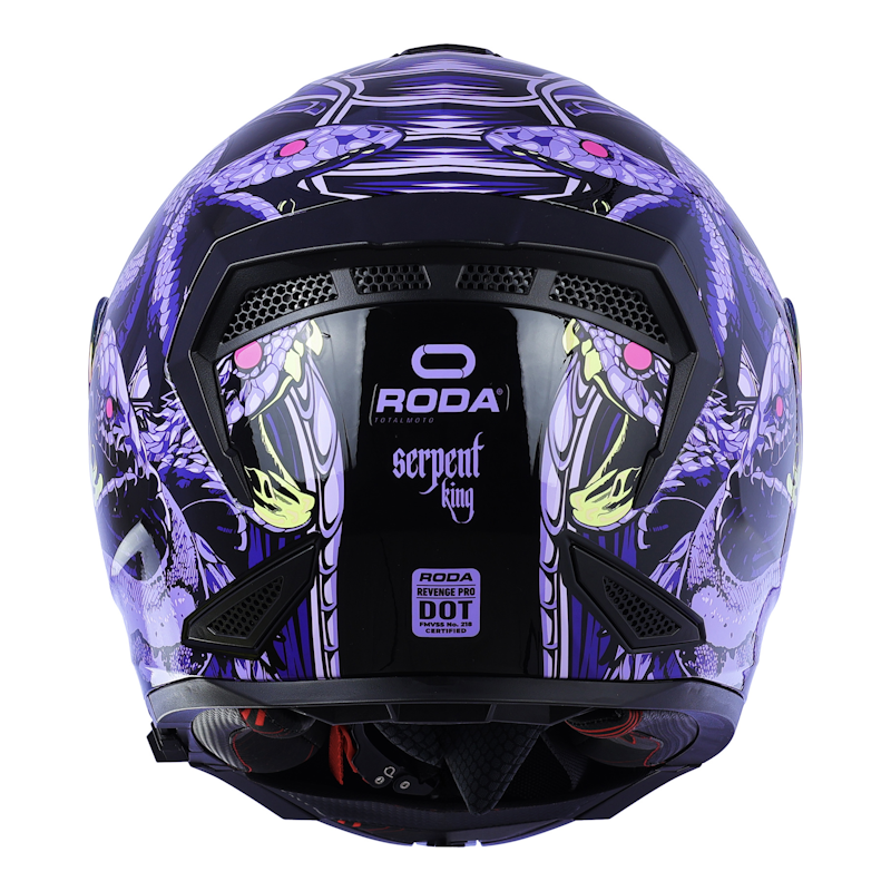 CASCO RODA REVENGE PRO SERPENT KINGS MORADO TALLA CHICA ABATIBLE MICA MORADA TORNASOL CERT. DOT