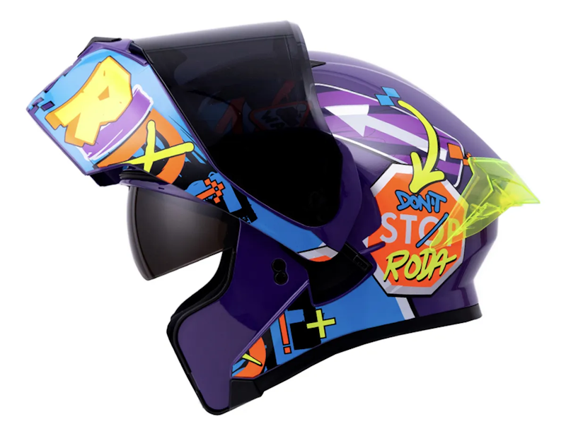 CASCO RODA RUSH NO RULES TALLA MED MORADO MICA HUMO ABATIBLE CERT. DOT
